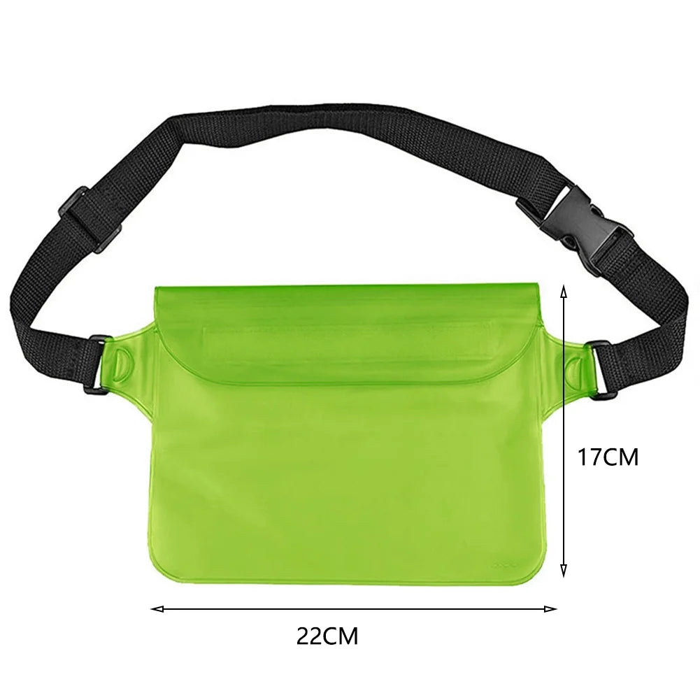 Keep your essentials dry and secure with this waterproof PVC waist and shoulder bag, perfect for swimming, diving, and beach adventures.